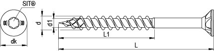DNS® plus Holzschraube, Flachsenkkopf, 3,5 x 35 mm, Teilgewinde (L1), SIT® 20, Stahl, verzinkt, blau passiviert, ETA-11/0106, 200 Stk.