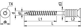 Distanzschraube Holz-Beton , Flachsenkkopf, 6,0 x 120 mm, Teilgewinde (L1), TX 30, Stahl, verzinkt, blau passiviert, 100 Stk.