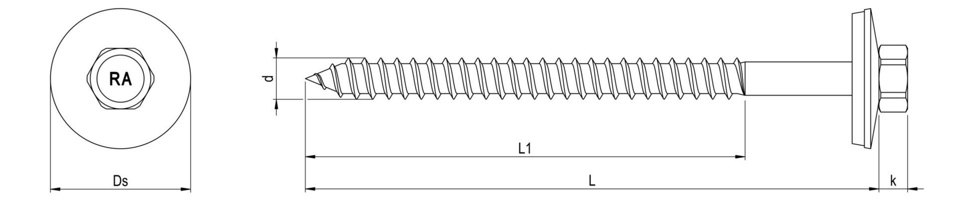 Gewindefurchende Schraube zur Befestigung von Aluminium-, Stahlprofilblechen, Faserzementtafeln und Sandwichelementen auf Holz- und Stahlunterkonstruktionen.