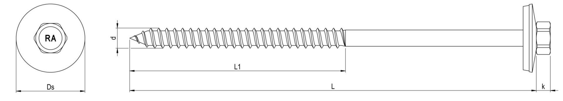 Gewindefurchende Schraube zur Befestigung von Aluminium-, Stahlprofilblechen, Faserzementtafeln und Sandwichelementen auf Holz- und Stahlunterkonstruktionen.