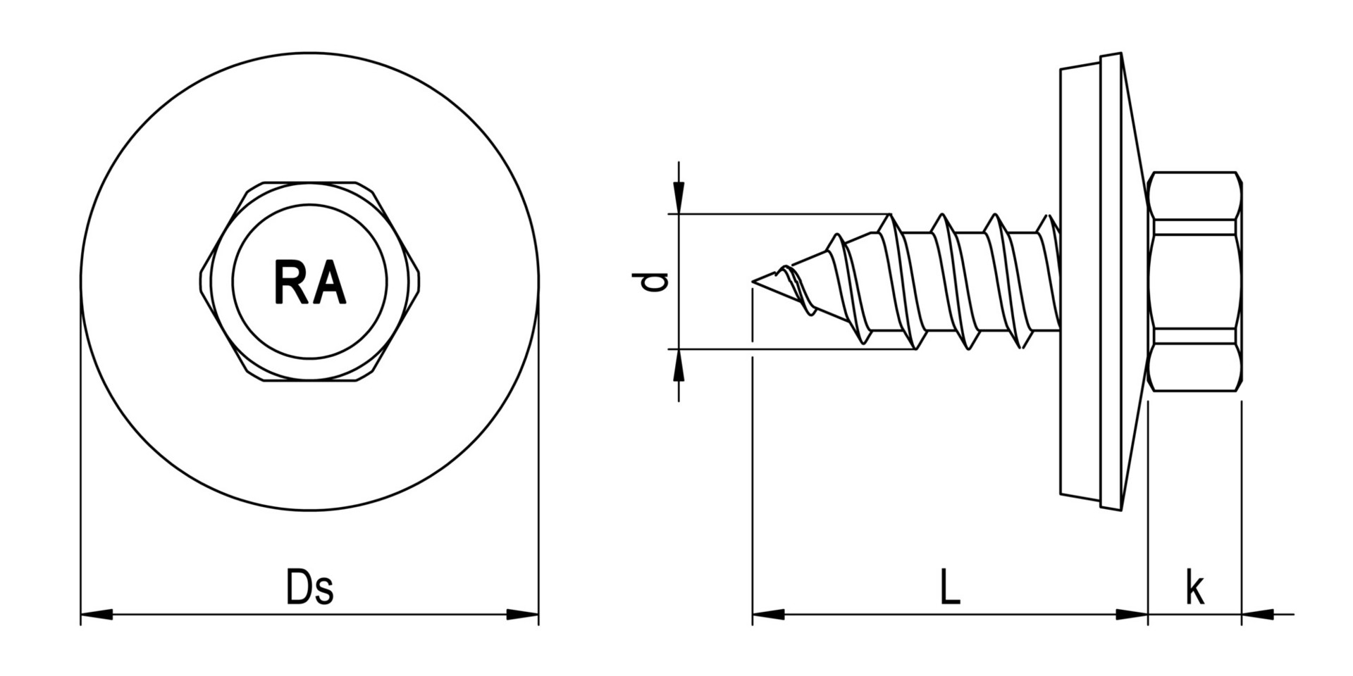 Gewindefurchende Schraube zur Befestigung von Aluminium-, Stahlprofilblechen, Faserzementtafeln und Sandwichelementen auf Holz- und Stahlunterkonstruktionen.
