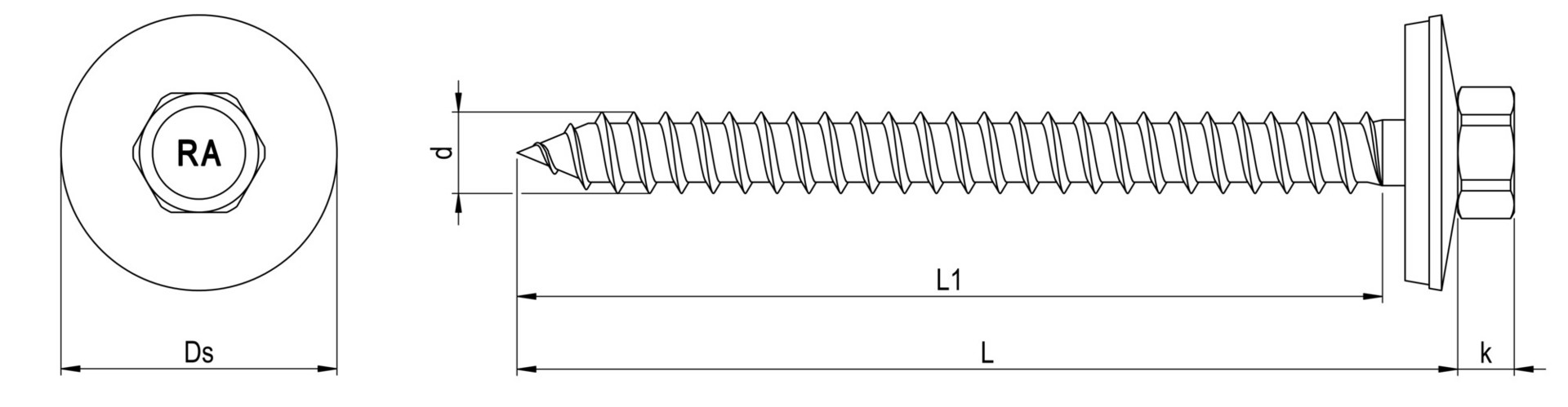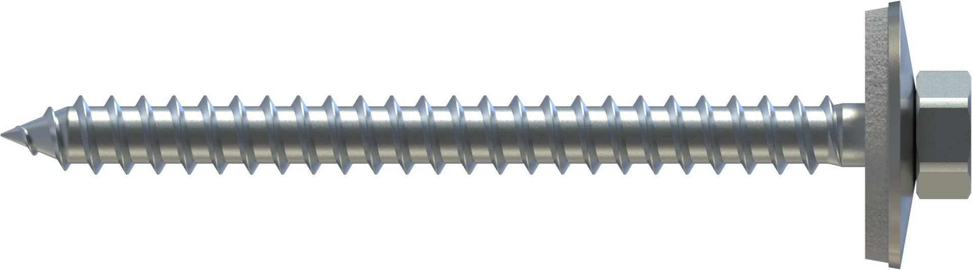 Gewindefurchende Schraube zur Befestigung von Aluminium-, Stahlprofilblechen, Faserzementtafeln und Sandwichelementen auf Holz- und Stahlunterkonstruktionen.