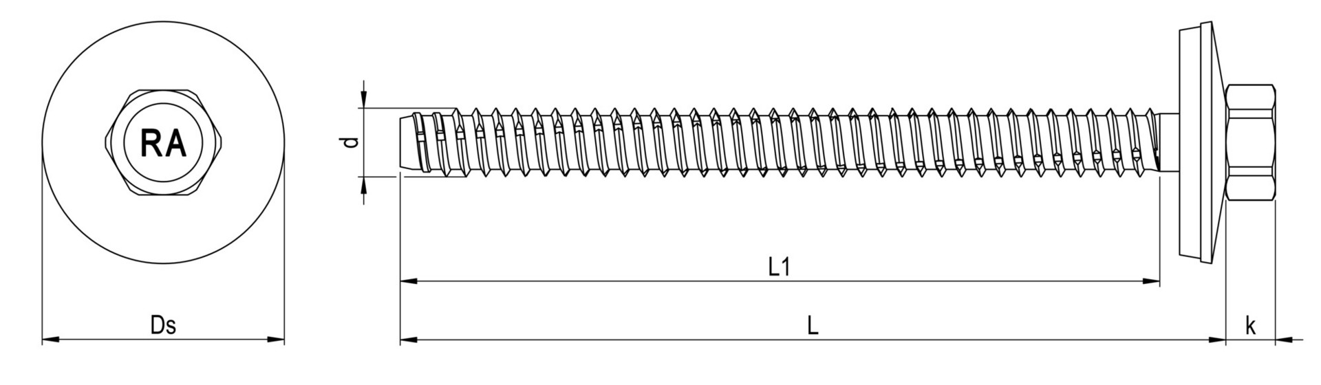 Gewindefurchende Schraube zur Befestigung von Aluminium- und Stahlprofilblechen, Faserzement- und Holztafeln und Sandwichelementen auf Stahl- und Aluminiumkonstruktionen.