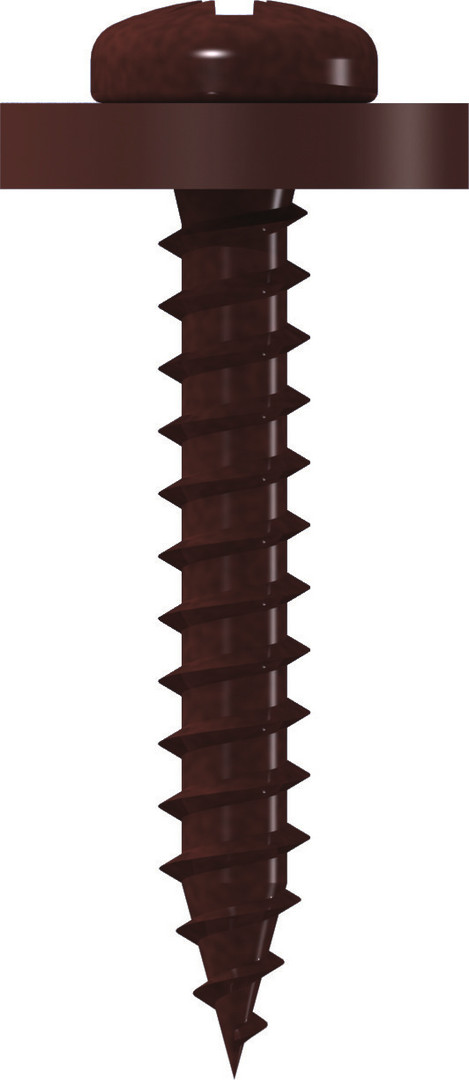 Blechschraube DIN 7981 mit aufgesteckter Polyamid-Scheibe. Sonderausführungen auf Anfrage mit Mindestmenge.
