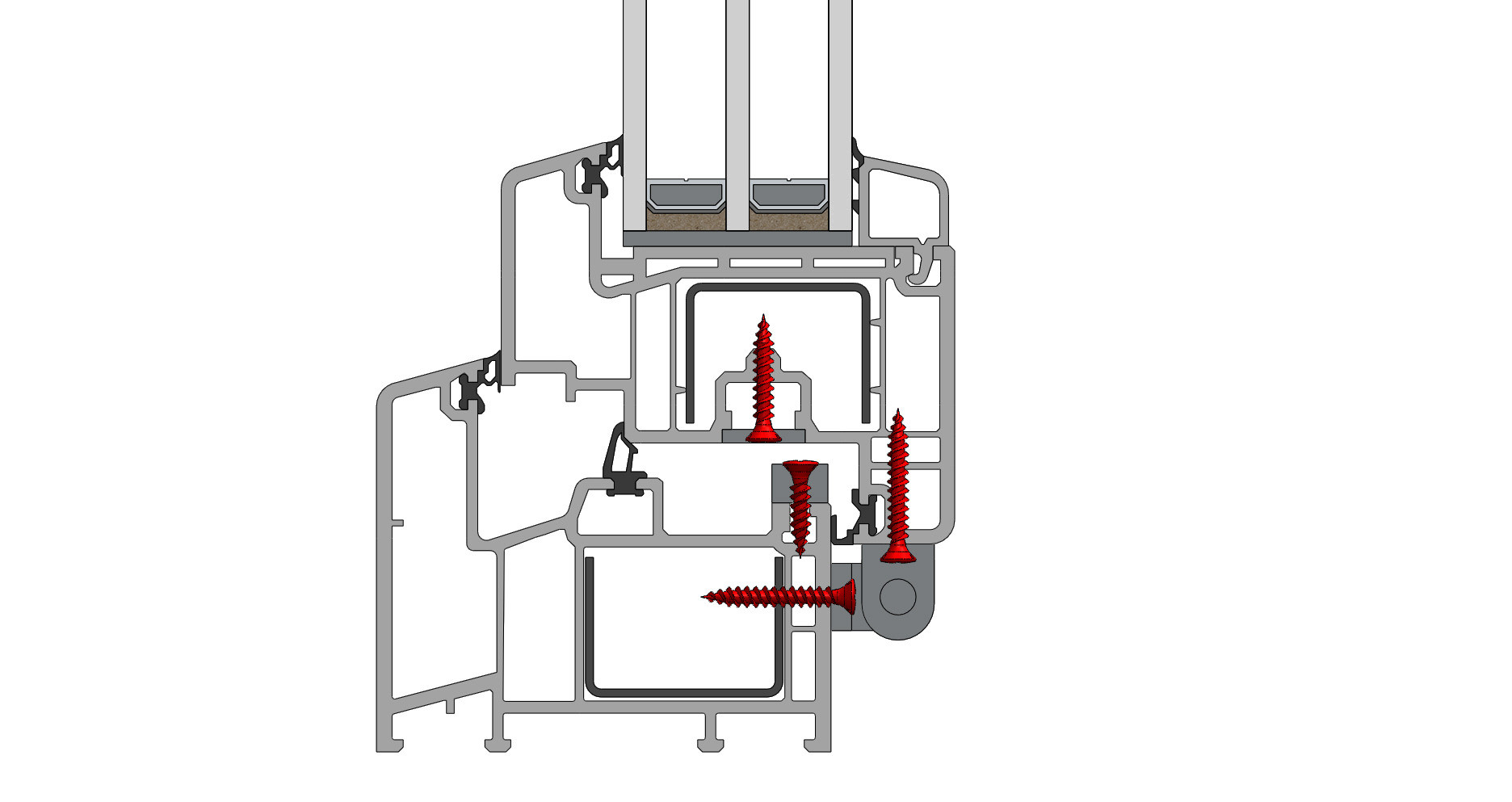 Beschlagschraube für Rahmen- und Flügelprofile.
