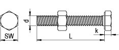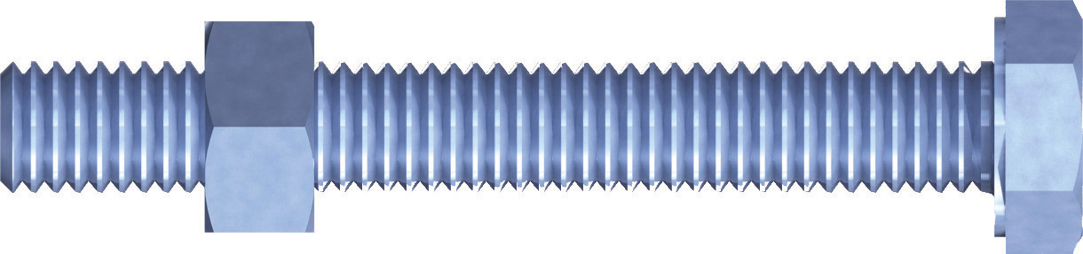 Mit Mutter DIN 934. Bis 50 mm Länge mit Vollgewinde-Schraube DIN 933. Ab 60 mm Länge mit Teilgewinde-Schraube DIN 931.