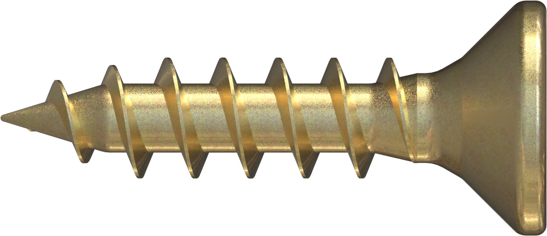 R2 Spanplattenschraube, Flachsenkkopf, 2,5 x 25 mm, Vollgewinde, PZD 1, Stahl, verzinkt, gelb chromatiert, 1.000 Stk.