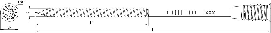 RDS-CA Distanzschraube Aluminium, Senkkopf, 10,0 x 250 mm, Teilgewinde (L1), Innensechskant 6, Edelstahl A4, gebeizt, passiviert, gleitbeschichtet, Z-21.2-2130, 30 Stk.
