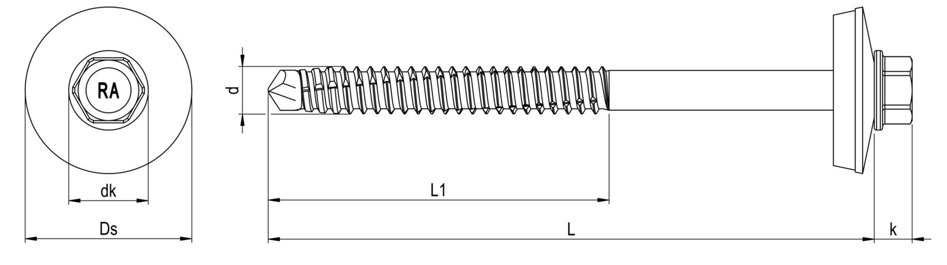 | Kopfform | Sechskantkopf mit angepresster Scheibe |