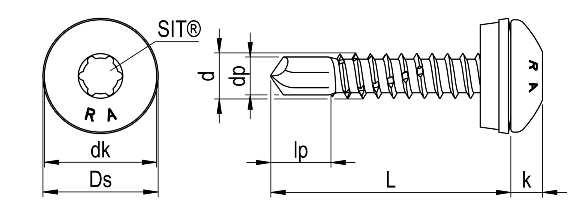 Bohrschraube zur Befestigung von Aluminium- und Stahlprofilblechen auf Aluminium- und Stahlunterkonstruktionen.