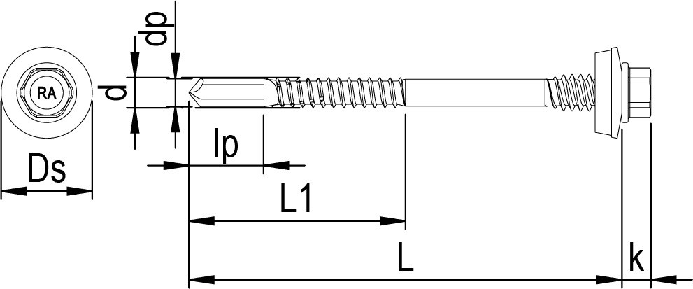 Bohrschraube zur Befestigung von Sandwichprofilen auf dickwandigen Stahlunterkonstruktionen.
