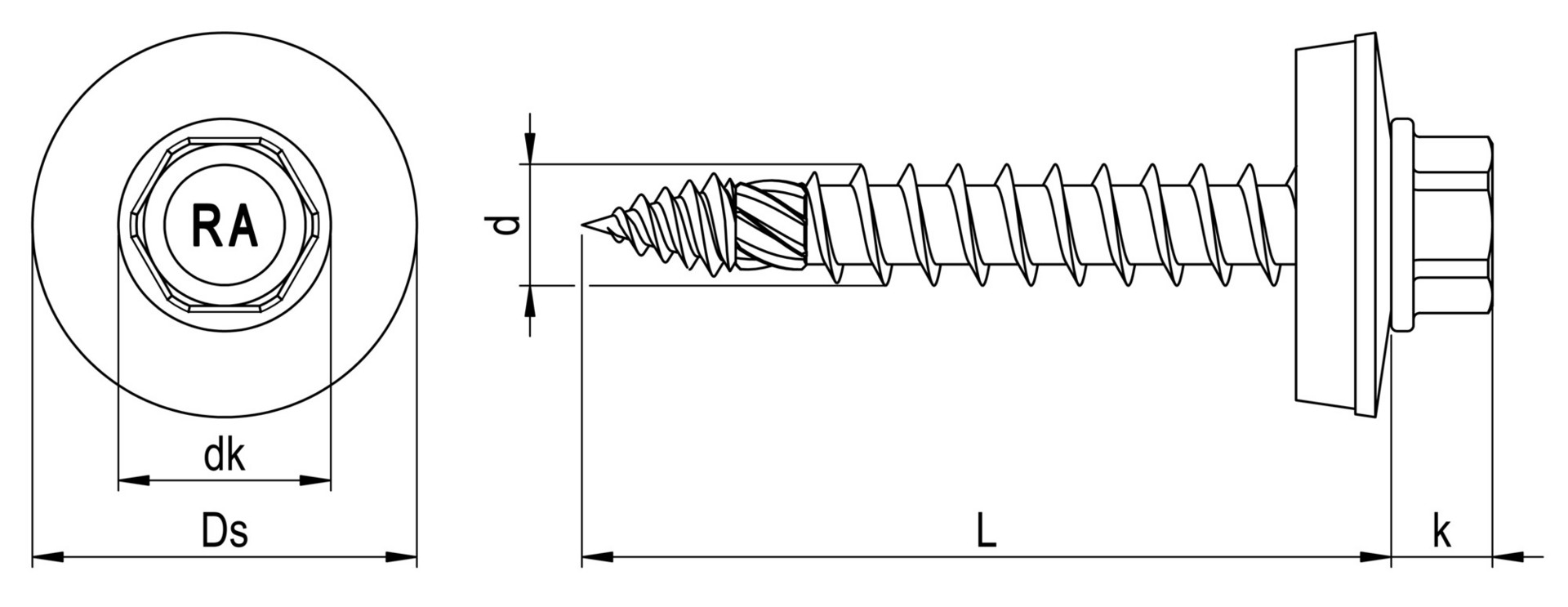 Bohrschraube für spanfreies Verschrauben von Aluminium- und Stahlprofilblechen auf Holzunterkonstruktionen.