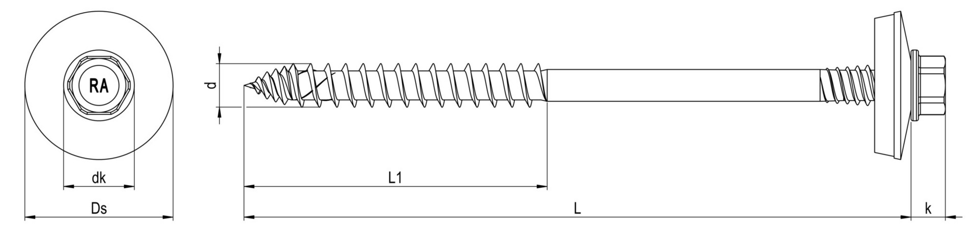 RP-TD-P Sandwich-Bohrschraube, Sechskantkopf mit angepresster Scheibe, 6,5 x 225 mm, Teilgewinde (L1), SW 8, E22, Bimetall (Edelstahl A2/Stahl), RUSPERT®, ETA-18/1136, 100 Stk.
