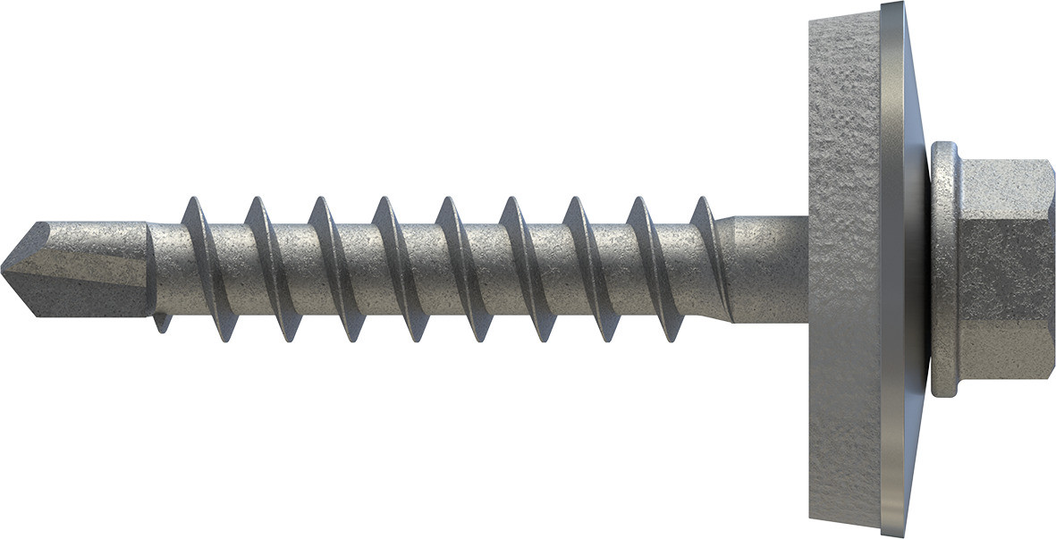 Bohrschraube zur Befestigung von Aluminium-, Stahlprofilblechen und Stehfalzhaltern auf Holz-, Aluminium- und Stahlunterkonstruktionen.