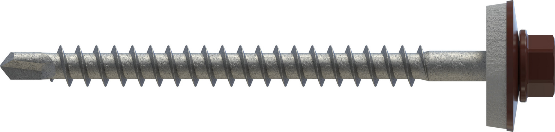 RP-r Bohrschraube, Sechskantkopf mit angepresster Scheibe, 6,0 x 75 mm, Teilgewinde (L1), SW 8, E19, Bimetall (Edelstahl A2/Stahl), RUSPERT®, RAL 8012, ETA-21/0306, 100 Stk.