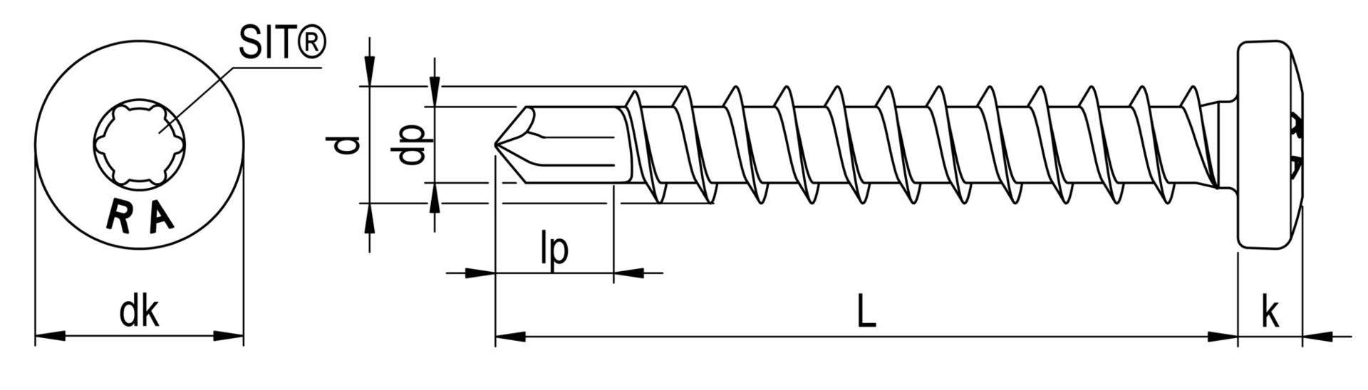RP-r-LK Bohrschraube, Linsenkopf, 6,0 x 38 mm, Vollgewinde, SIT® 25, Bimetall (Edelstahl A2/Stahl), RUSPERT®, Z-14.4-668, 100 Stk.