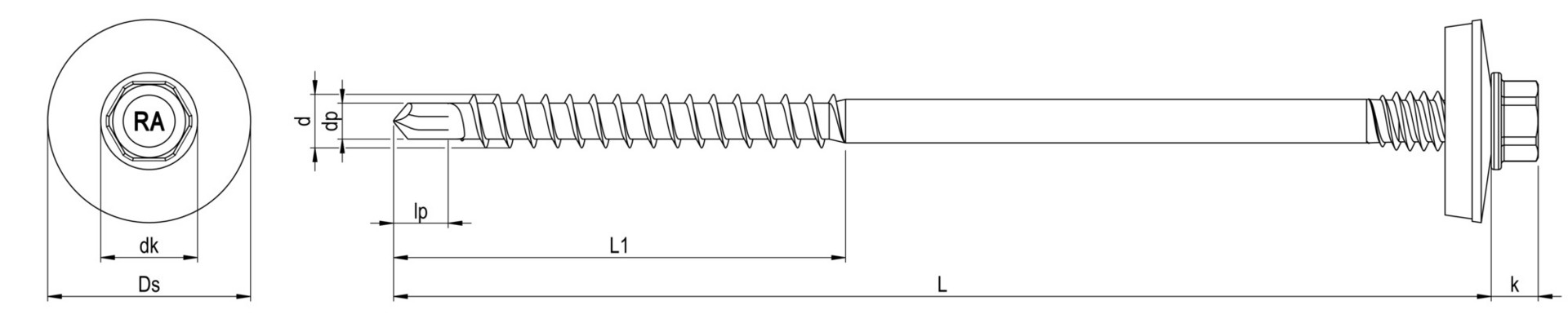 Bohrschraube zur Befestigung von Sandwichelementen auf Holz- und dünnwandigen Stahlunterkonstruktionen.
