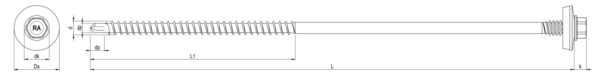 RP-r-P Sandwich-Bohrschraube, Sechskantkopf mit angepresster Scheibe, 6,0 x 203 mm, Teilgewinde (L1), SW 8, E19, Bimetall (Edelstahl A2/Stahl), RUSPERT®, ETA-18/1136, 100 Stk.