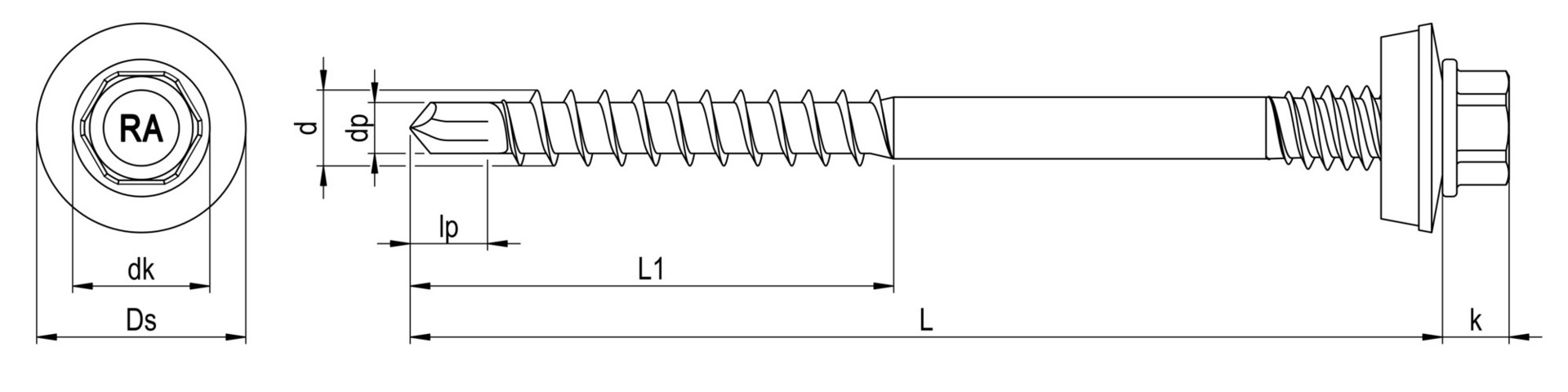 Bohrschraube zur Befestigung von Sandwichelementen auf Holz- und dünnwandigen Stahlunterkonstruktionen.