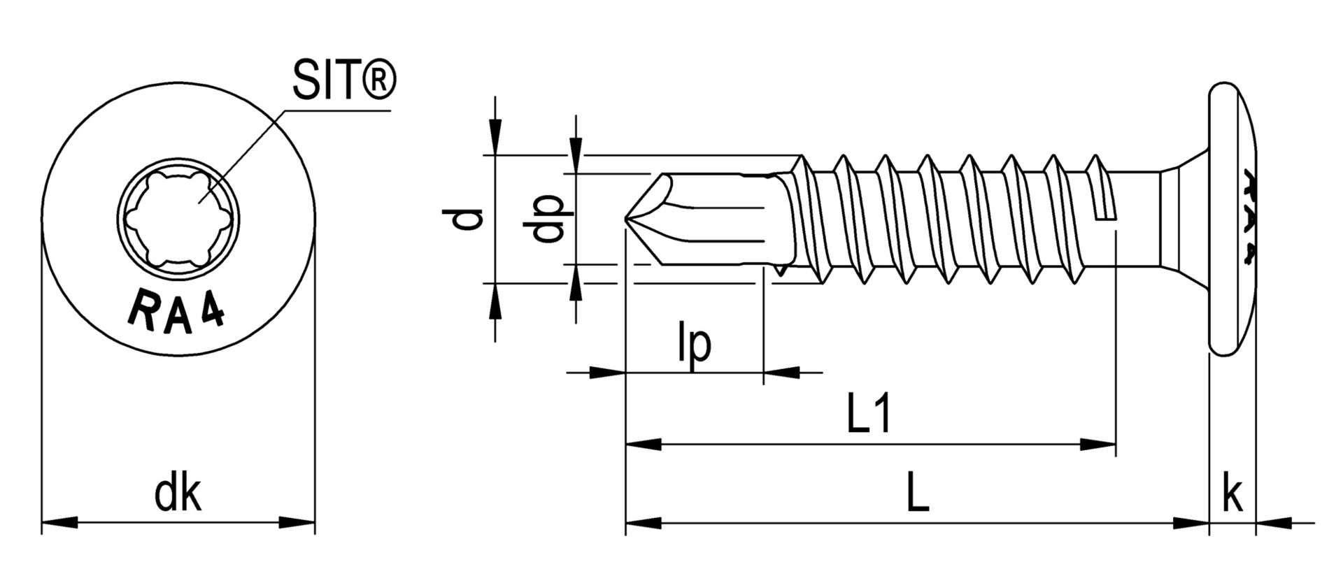 Bohrschraube zur Befestigung von Aluminium- und Stahlprofilblechen auf Aluminium- und Stahlunterkonstruktionen.