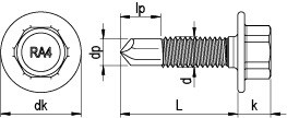| Kopfform | Sechskantkopf mit angepresster Scheibe |