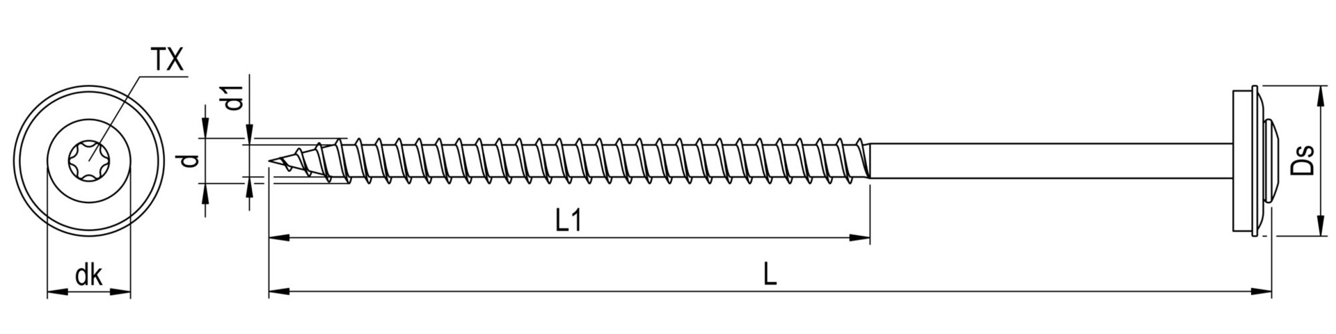 Spenglerschraube mit Dichtscheibe E15, Linsensenkkopf, 4,5 x 20 mm, Teilgewinde (L1), TX 20, E15, Edelstahl A2, gebeizt, passiviert, EN 14592:2008+A1:2012, 100 Stk.