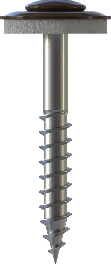 Spenglerschraube mit Dichtscheibe E15, Linsensenkkopf, 4,5 x 25 mm, Teilgewinde (L1), TX 20, E15, Edelstahl A2, gebeizt, passiviert, RAL 8014, EN 14592:2008+A1:2012, 200 Stk. 000120V038-04502504-12 60543/4