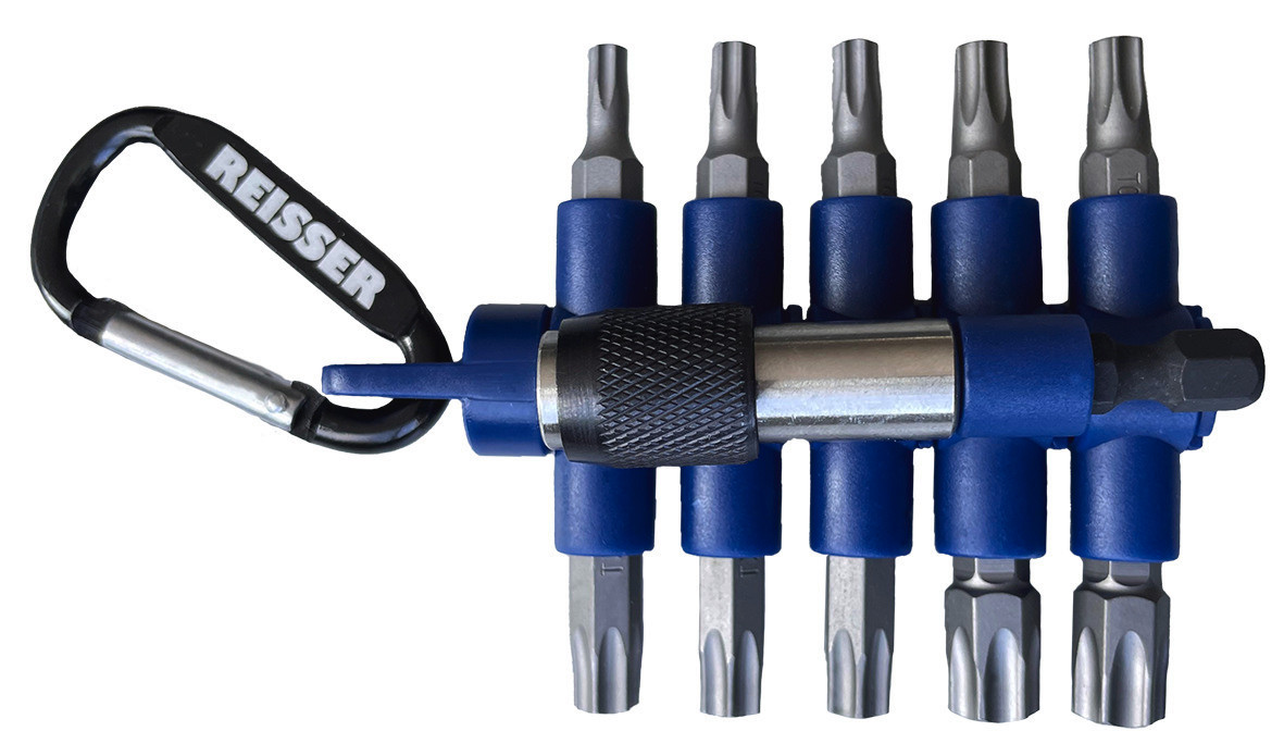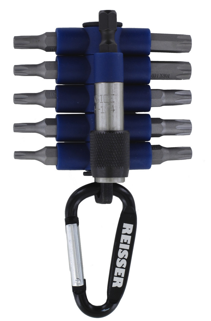 11-teilig mit Magnet-Bithalter 1 x 1/4" x 60 mm und TX Bits: 1 x TX 20, 2 x TX 25, 2 x TX 30, 3 x TX 40, 2 x TX 50, Karabinerhaken