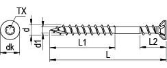 Verlegeschraube , Flachsenkkopf, 4,5 x 50 mm, Teilgewinde (L1), TX 20, Stahl, verzinkt, blau passiviert, EN 14592:2008+A1:2012, 250 Stk.