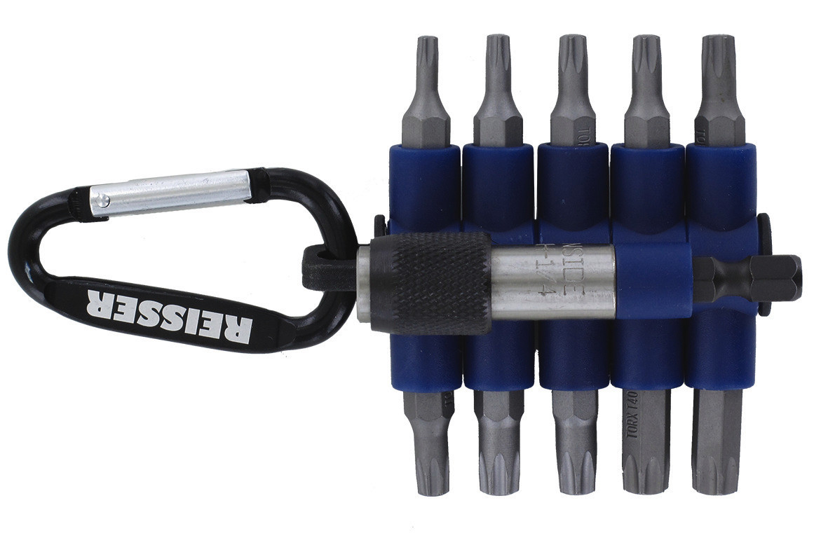 11-teilig mit Magnet-Bithalter 1 x 1/4" x 60 mm und TX Wedge Bits: 1 x TXW 10, 1 x TXW 15, 2 x TXW 20, 2 x TXW 25, 2 x TXW 30, 2 x TXW 40, Karabinerhaken