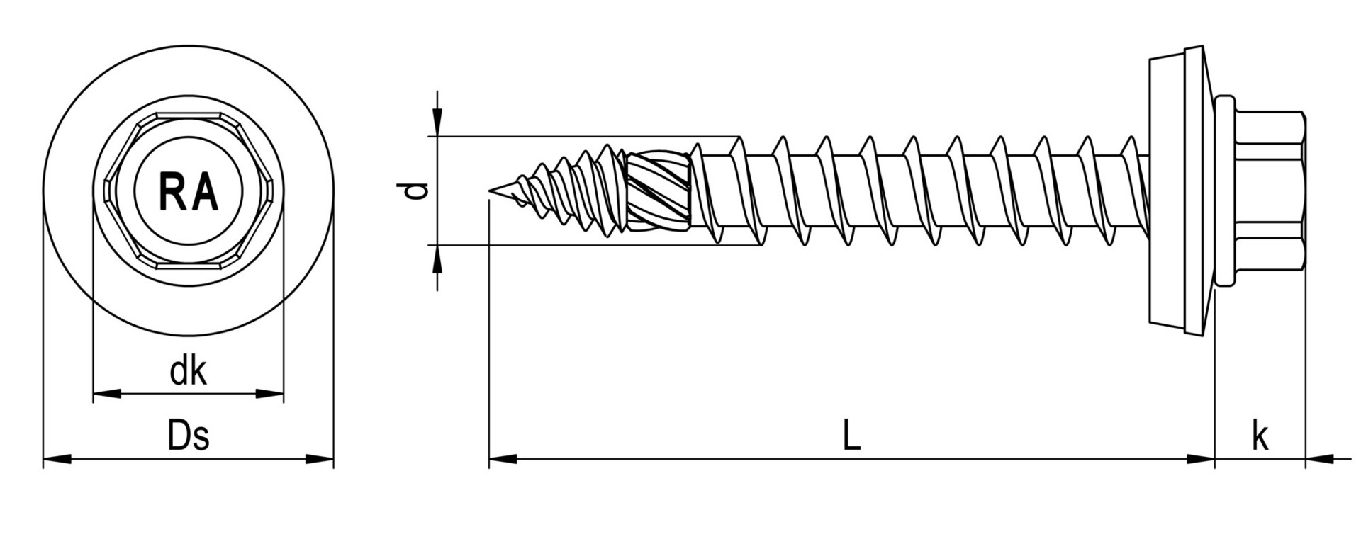 Bohrschraube für spanfreies Verschrauben von Aluminium- und Stahlprofilblechen auf Holzunterkonstruktionen.