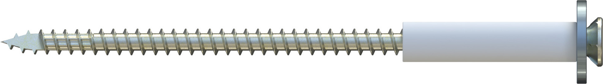 Einbindetiefe Beton 60 mm, Einbindetiefe Holz siehe Gewindelänge. Vollgewindeschraube Ø 8,0 mm inkl. Unterlegscheibe 8,4 x 25 mm und Abstandshülse 12 x 8,5 x 52 mm. Vollgewindeschraube Ø 10,0 mm inkl. Unterlegscheibe 10,5 x 30 mm und Abstandshülse 14 x 10,5 x 51 mm. Weiterführende Verarbeitungsrichtlinien nach allgemeiner Bauartgenehmigung aBG Z-9.1-916.